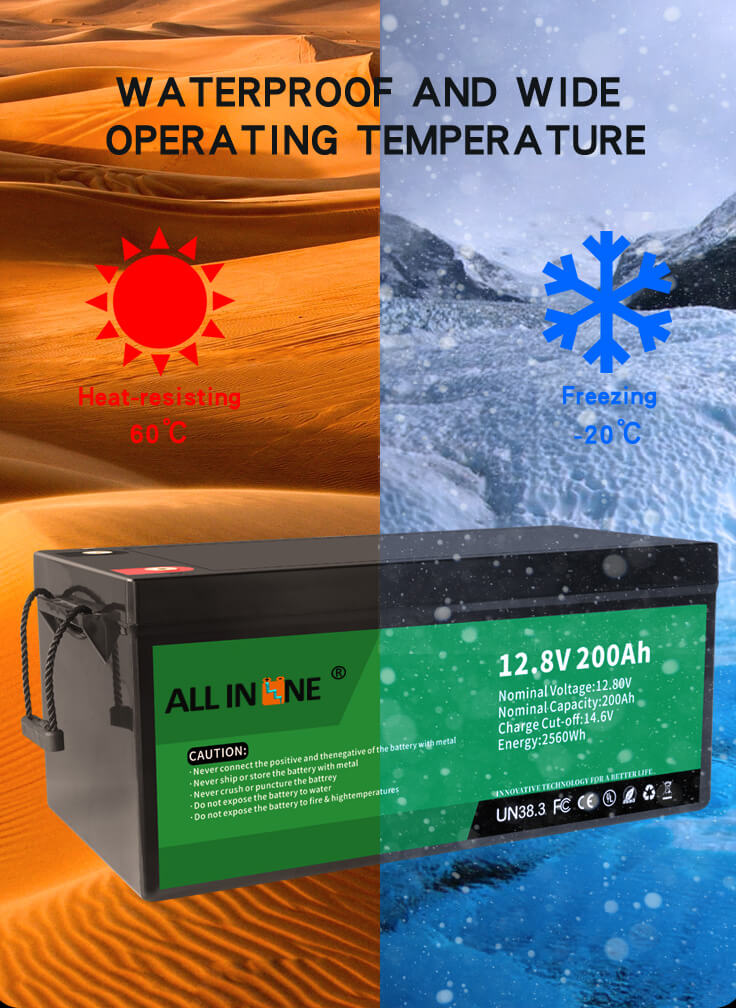 4. Keng ish harorati: LiFePO4 batareyasi -20 ° C ~ 60 ° C gacha bo'lgan keng ish haroratiga ega.